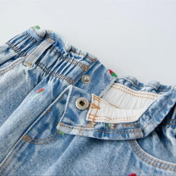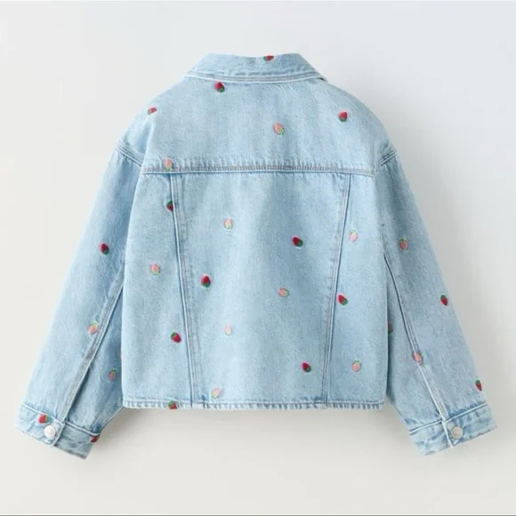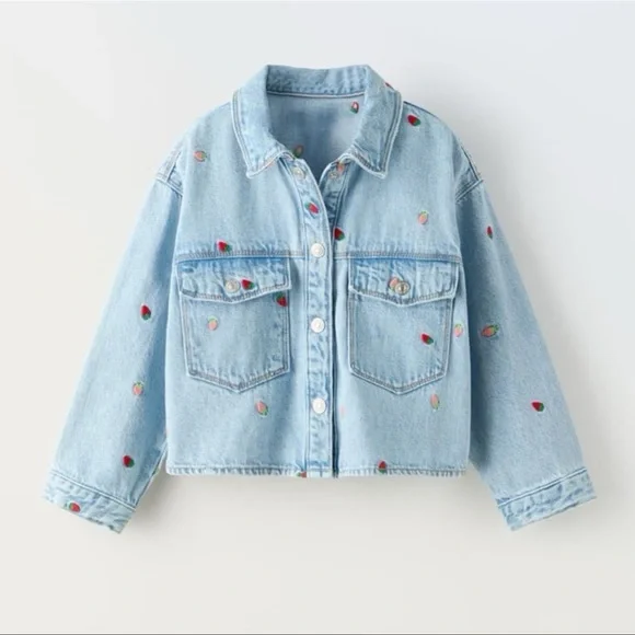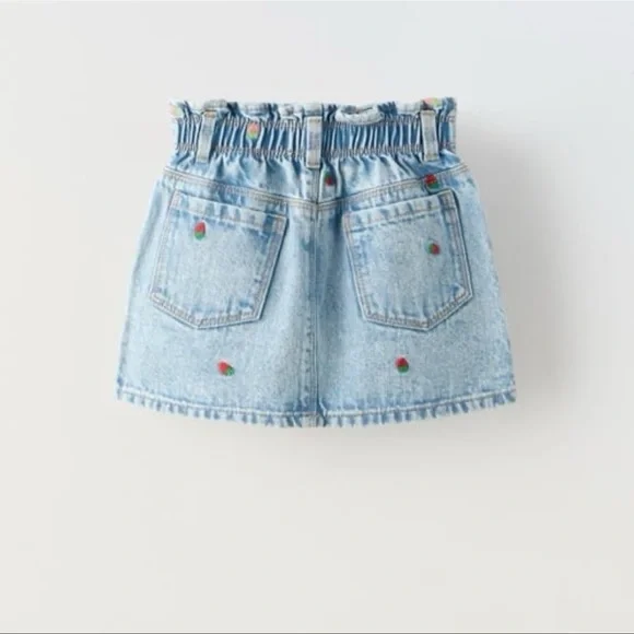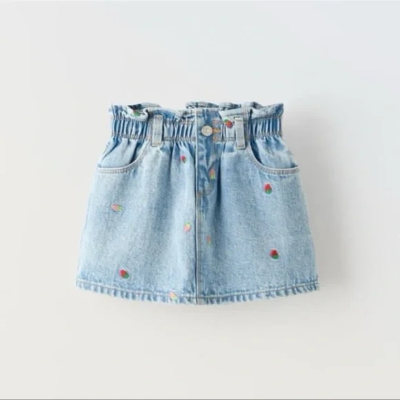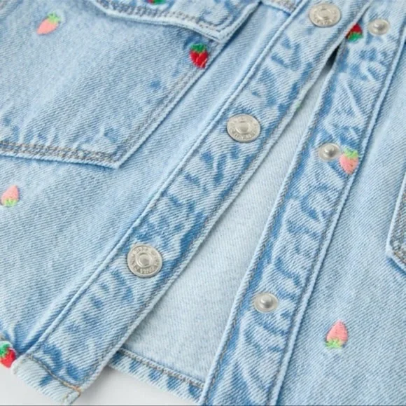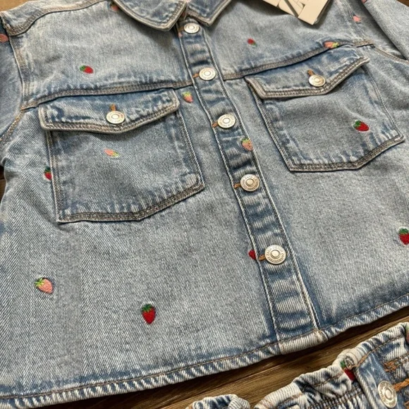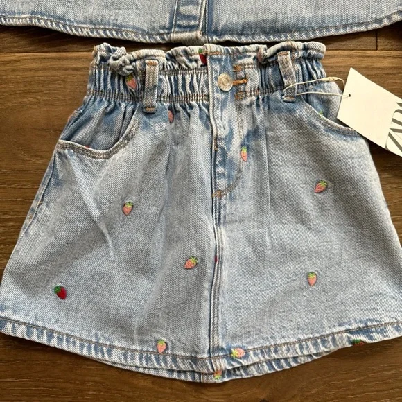 Zara Baby Kids Toddler Girl strawberry embroidered denim overshirt and skirt Matching SetSize 6 (run smaller like 5t imo)NWT