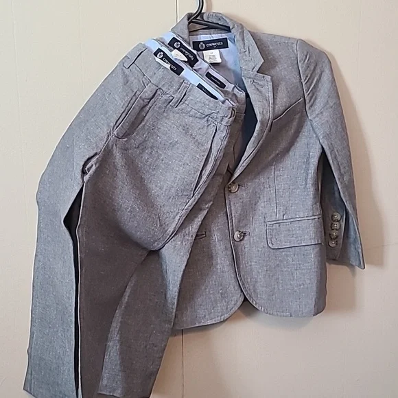 Crewcuts Thompson Boys Suit with 2 pairs of pantsJacket size 4-5#1 Pants size 4#2 Pants size 5This is a beautiful grey color and looks great on!