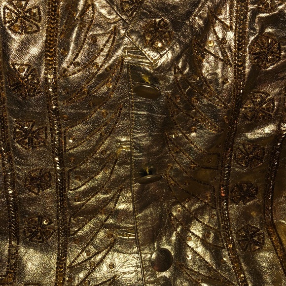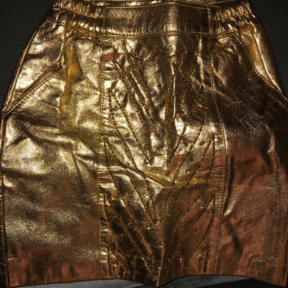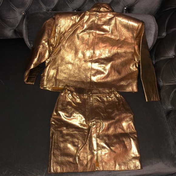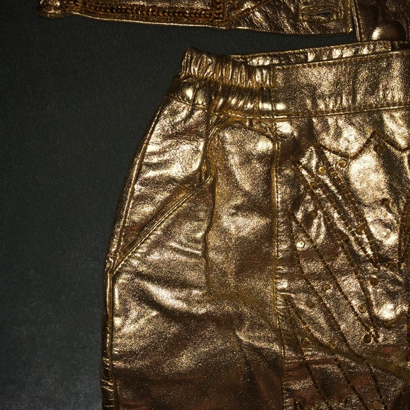 14kt Gold Leather suit with sequins, skirt with pockets. Size 2-3. NWOT!! Absolutely BEAUTIFUL!!