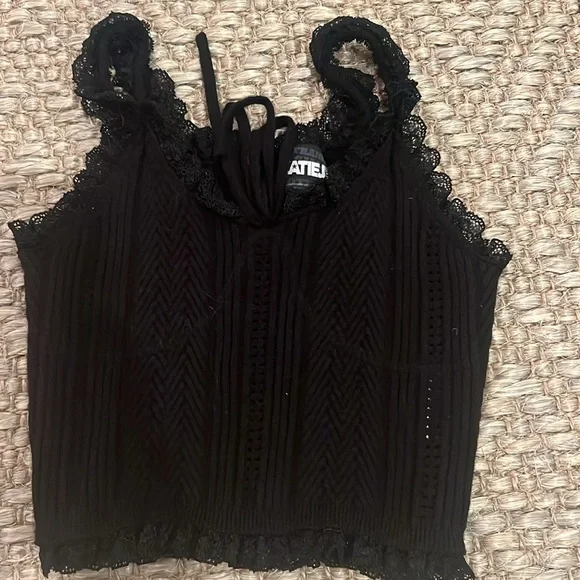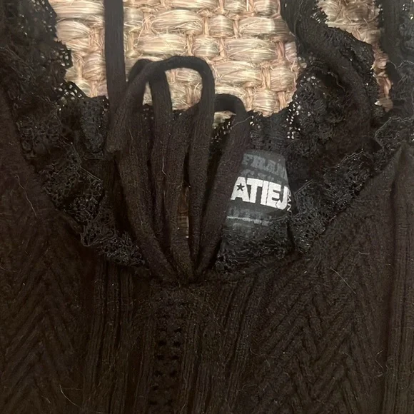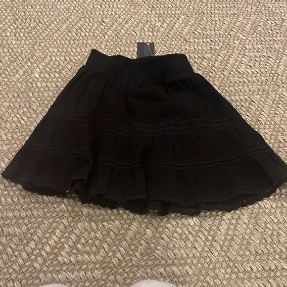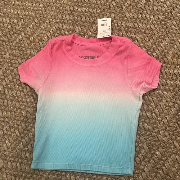 one royal blue wrap dress. super cute, tight dress size S for party’s. two black skirts, one leather pleated skirt size M, the other NWT ruffle XS, Two shirts one pink ombré to turquoise NWT M & the other lace, black lace size L. All should fit 8-12 year olds.