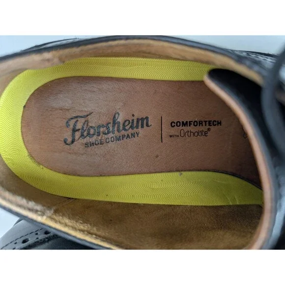 Florsheim Comfortech Ortholite Black Wingtip Lace Up Dress Shoe Oxford Size 9D