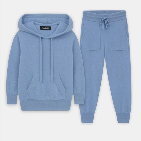 Beautiful, heavenly soft-The Kid’s Essential Cashmere Hoodie Set is a sweet, soft ensemble for the little ones in your life. It features a long-sleeve pullover hoodie and jogger pant, each made from 100% premium, sustainable cashmere.Wash tip: NAADAM parents have been throwing our kids´ cashmere in a lingerie bag, washing on a cold gentle cycle, then drying flat (despite the tag´s instructions), and they still look good as new.100% Mongolian Cashmere