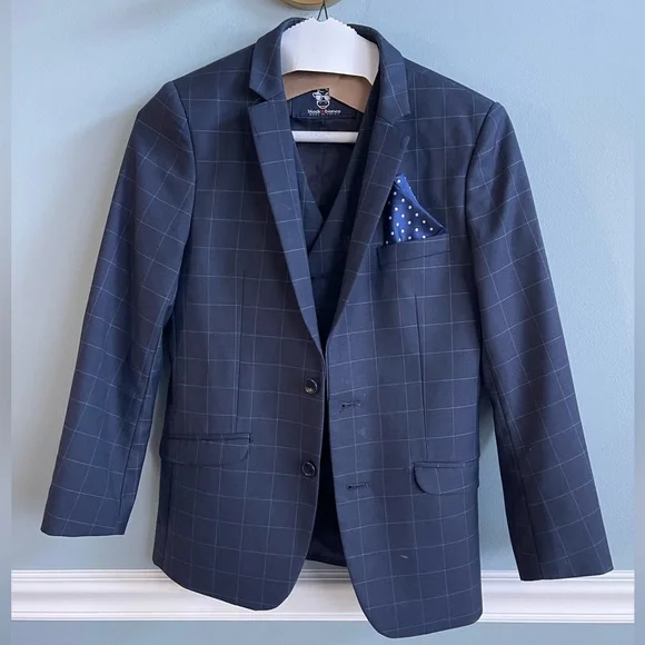 Gently worn boys window pain navy and white suit size 12 boys