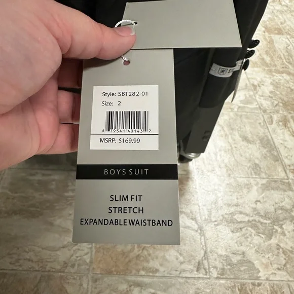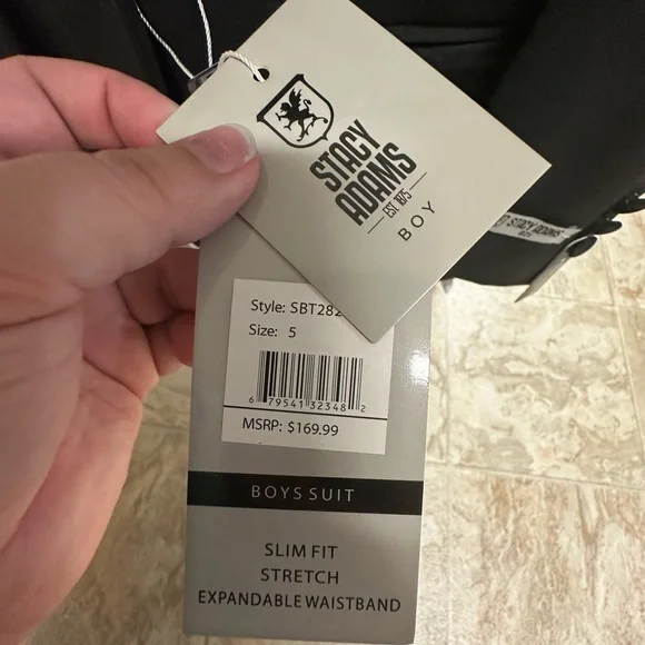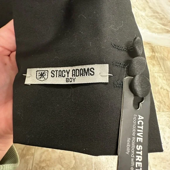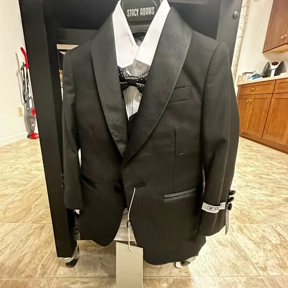 2 Brand new Stacy Adams Boys black suits.One is a size 2, the other one is size 5Both suits include bow tie, white shirt, vests, pants and jacket. They retail for $169.99 each
