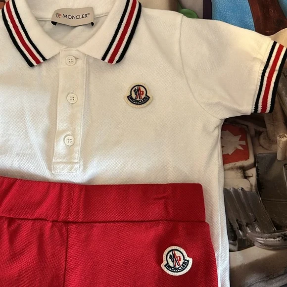 Moncler Boys Striped Polo Shirt W/ Shorts, Size 3