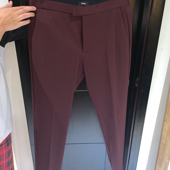 Signature five-pocket pant with a slim leg from hip to ankle. No belt loops. Tighten waist with interior buttons Zip fly closure. Fully bonded at the seams for a flattering fit, this pant is made of smooth STRETCH cotton with the subtle texture of wool.