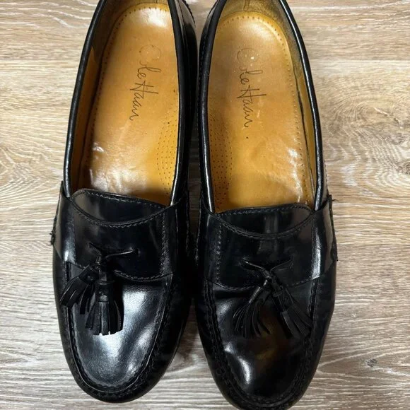 Elevate your shoe game with these stylish Cole Haan Pinch Tassel loafers. The black leather slip-on shoes are perfect for any occasion, whether it´s a formal event or a...