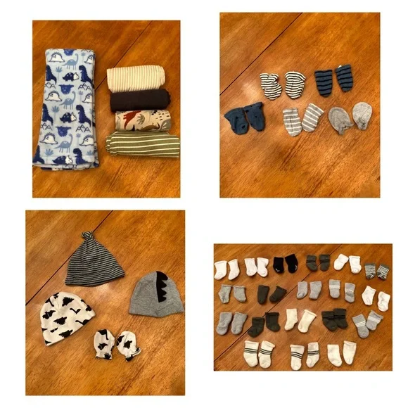 This includes newborn, 0-3 months, 3 months,3-6 months &6 months clothes. Sleepers, onesies, beanies , sets, socks, jumpers, blankets and mittens total of 132 items