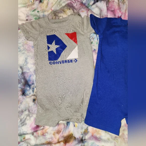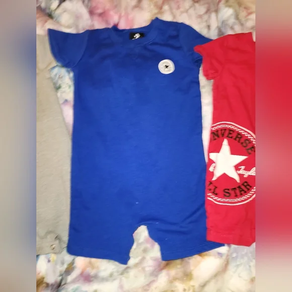 Converse bundle!3 like new rompers. All 9mth3 pairs like new converse crib shoes. Size 3cBlack, never worn. White, worn once.Red one are size 2c, but fit more like 3c, never...