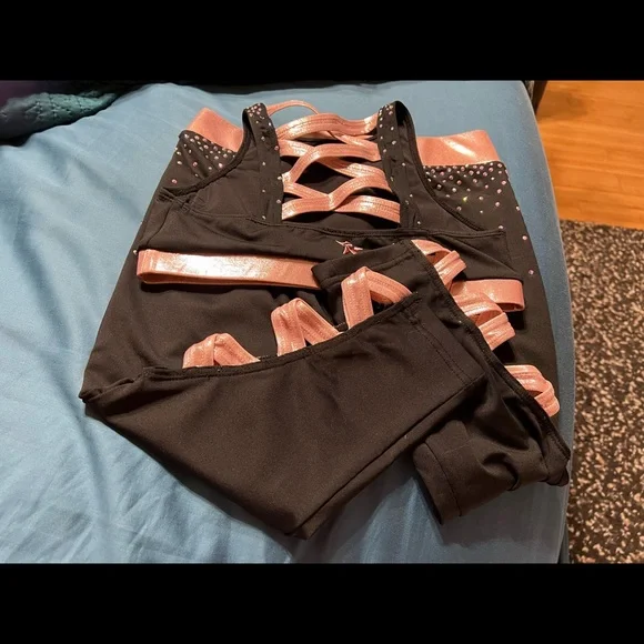 Rebel active wear - Sports Bar and Capri leggingsPink and Black - YL - excellent used condition
