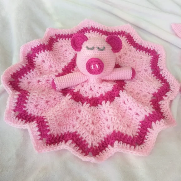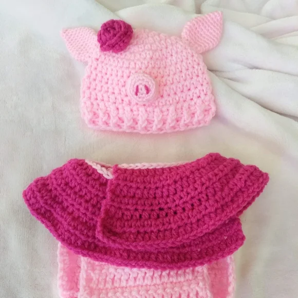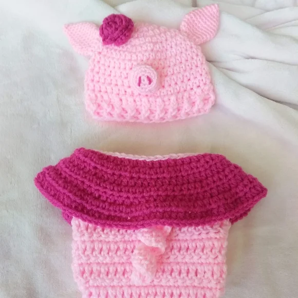 and this little piggy was THE cutest gift at the baby shower.This set is made to order by artisan Sheeshee Stitchin´; please allow for additional time to ship. Before clicking "buy now", comment on this listing with your size request:~newborn~up to 3 months~3 to 6 months~6 to 9 monthsDid you know... There are currently no machines that can crochet - unlike knitting, crochet stitches can only be done by hand.Studies have shown that babies become more attached to hand made stuffies - they also favor those who gift them. takes 20% of every sale - a fee that is much higher than other platforms. Okay okay, only two of those three are true... but do you know which two?
