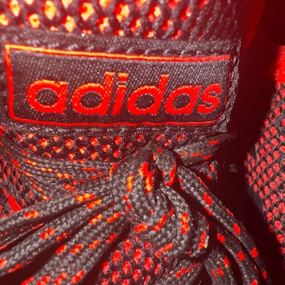 Experience the perfect blend of style and performance with these adidas athletic shoes. Featuring a sleek black mesh upper accented with vibrant red details, these shoes are designed for both comfort and durability. The cushioned sole ensures a smooth and supportive stride, making them ideal for any athletic activity.
