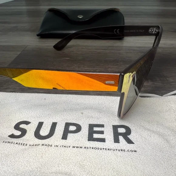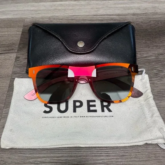 Like new- barely worn - Discontinued you cant get these anymore.Tuttolente - red- orange- pink translucent- black lensComes with original leather case-pouch
