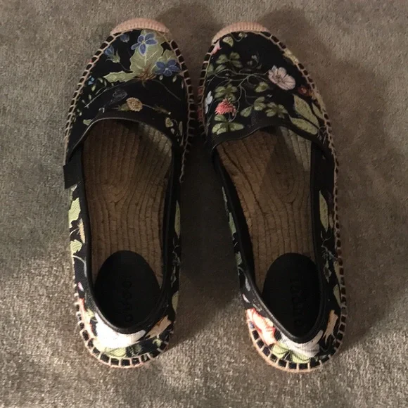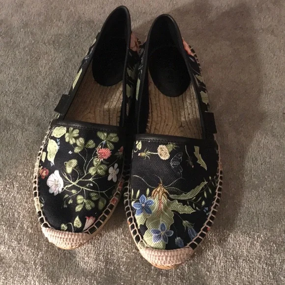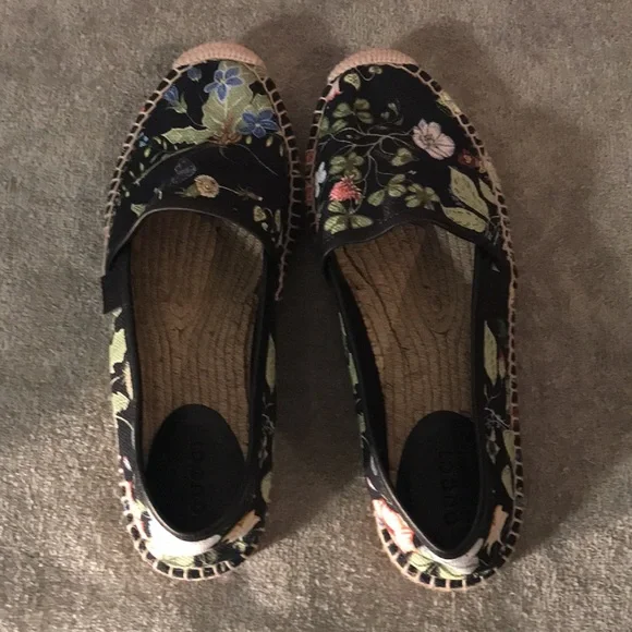 black floral print shoes, good condition size 36 1/2 UK which is equivalent to 5-5 1/2 US.
