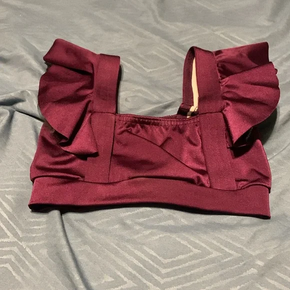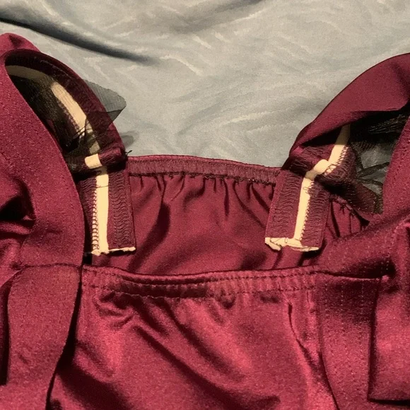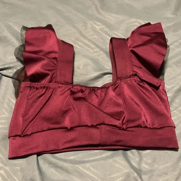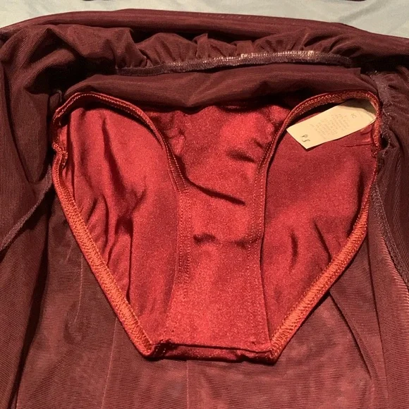 This elegant burgundy skirt features a stylish layered design, perfect for any occasion. The rich color adds a touch of sophistication to your wardrobe.Top is Kelle Medium ChildBottom is Weissman IC Intermediate ChildTop has been altered at the straps - see pics for reference