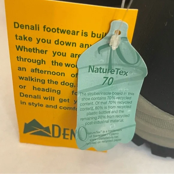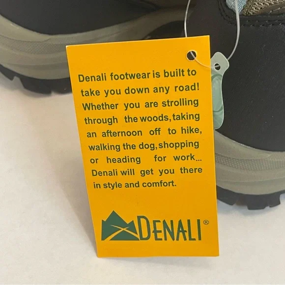 Hit the trail or the sidewalk with these brand new Denali women’s hiking boots in size 6. With a supportive ankle-height design and rugged tread outsole, these boots are ideal for hiking, dog walking, or just everyday errands. Built with breathable mesh panels, reinforced toe/heel, and eco-conscious NatureTex 70 insoles made from recycled materials.Condition: Brand new in box with tags.