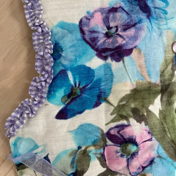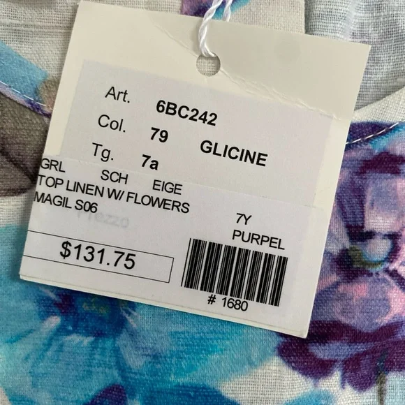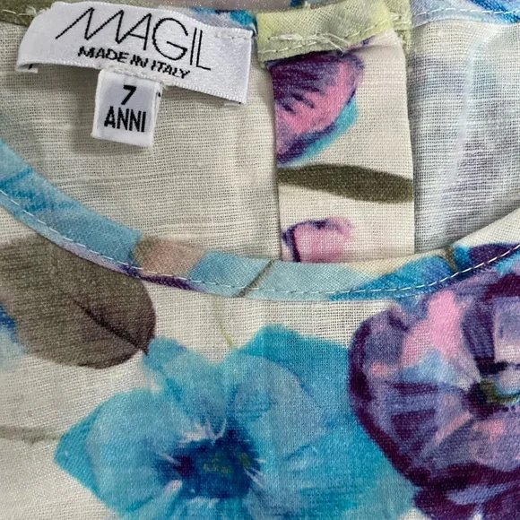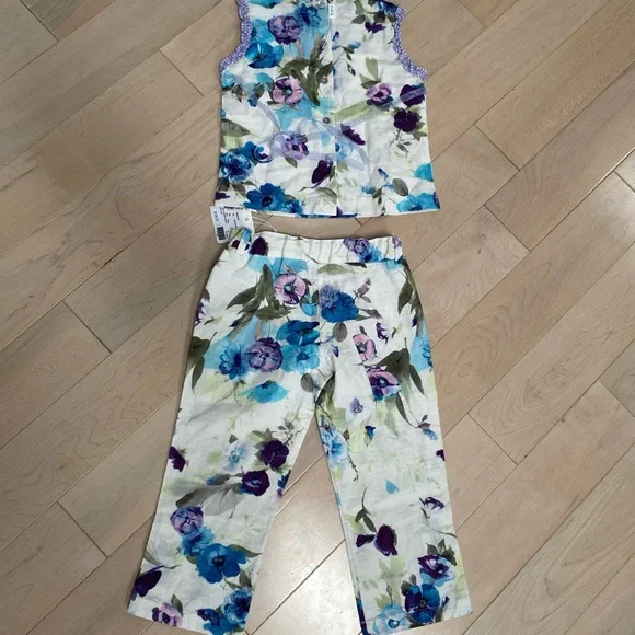 Beautiful one of a kind brand new with tags no flaws linen cotton floral top and pants set made in Italy, size 6-7 girls, adjustable waist note pants do run bit bigger so 7 -8 is...