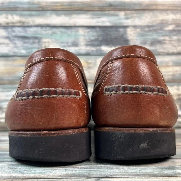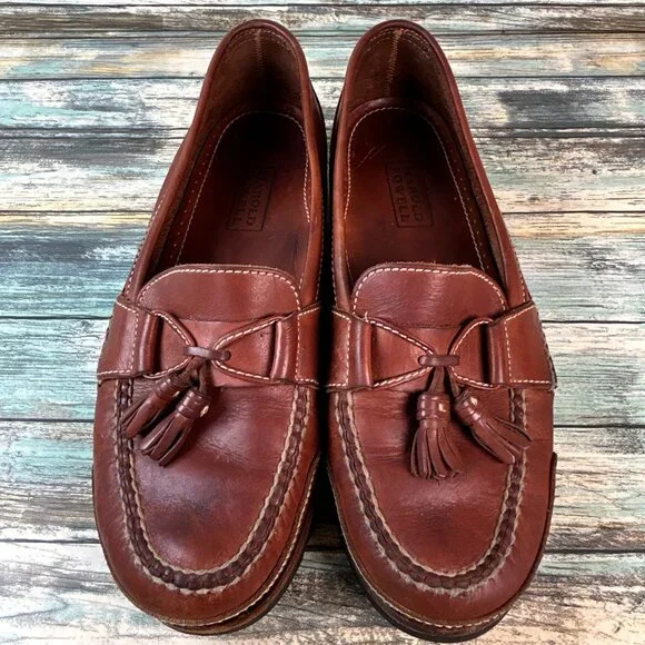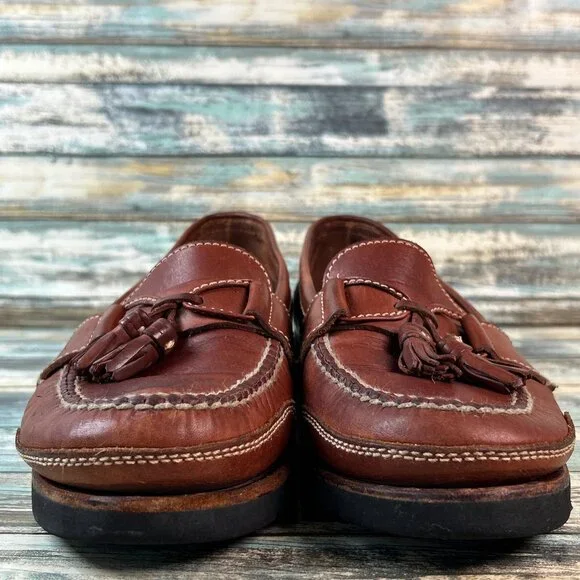Harold Powell Tassel Penny Loafer Mens 10.5M Brown Leather Moc Toe Vibram Shoes.There is some uneven wear on the heels and some small punctures on one sole ´they don´t...