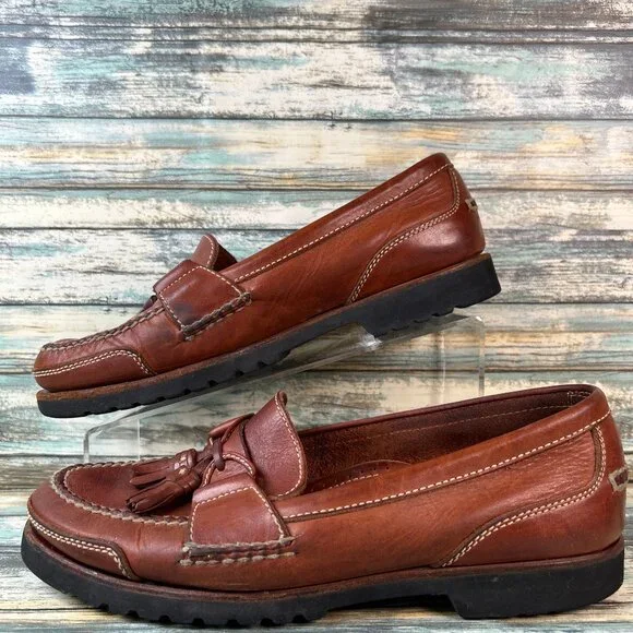 Harold Powell Tassel Penny Loafer Mens 10.5M Brown Leather Moc Toe Vibram Shoes