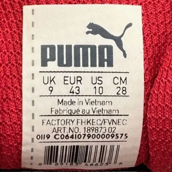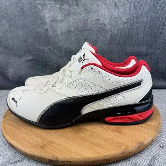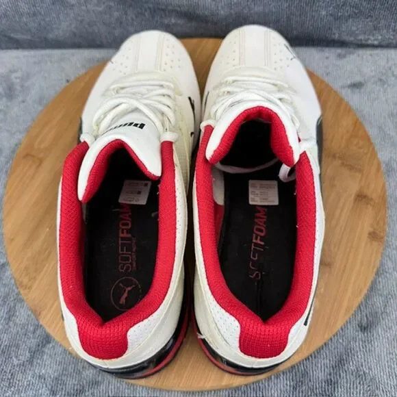 Item Name: Puma Tazon 6 FM Mens Size 10 Shoes White Red Soft Foam Street Running SneakersCondition: Used, no box. Style Code: 18987302 Size: Mens Size 10 (Sizes are listed as US equivalents)*Please be sure to look at all pictures before purchasing this item!* Even if we specifically state that the pair is new, it is possible that a shoe may have a defect from manufacturing / shipping. Please review the photos as we do our very best to show you every angle of the shoes you are purchasing. As always, do not hesitate to reach out if you have questions!