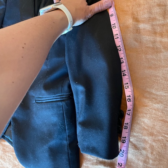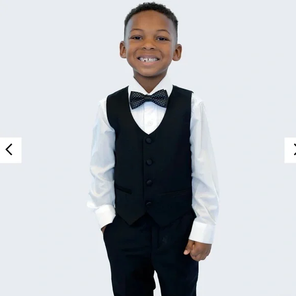 Worn once for a wedding and cleaned after. In like new condition! Lots of compliments.Boys black tuxedo 5-piece set by Stacy Adams. Slim Fit. Set includes: jacket, pants, vest,...