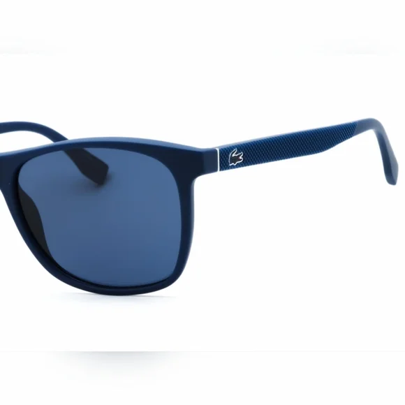 Stylish blue sunglasses with a sleek design. Features the Lacoste logo on the side.Brand New Men´s Sunglasses LACOSTEL860SUPC: 886895335799Color Code : 424Color Name : MATTE BLUE/BlueGender : MenShape : RectangularMade in : ChinaFrame Material : injected propionateSize : 56X18X145Quantity : 5