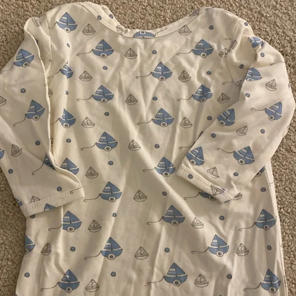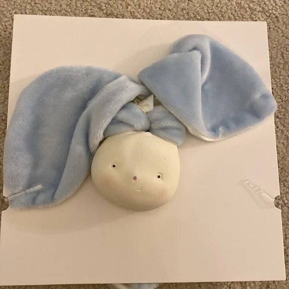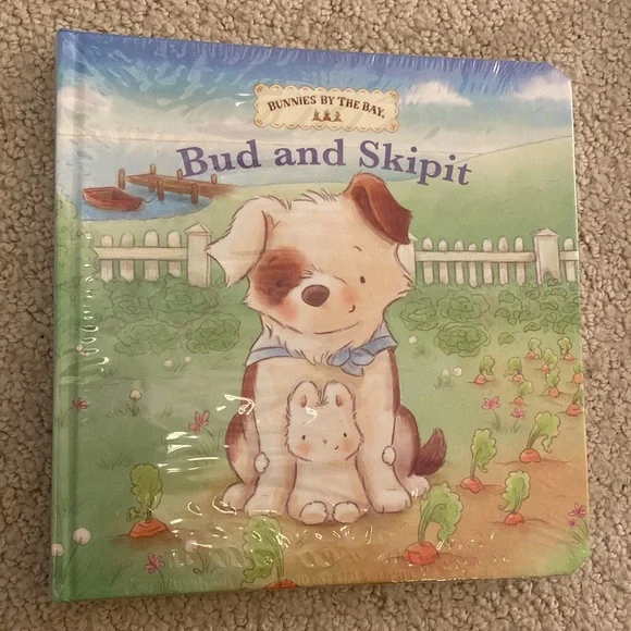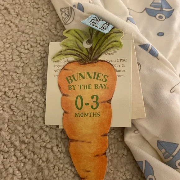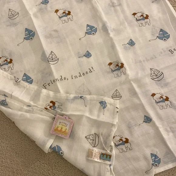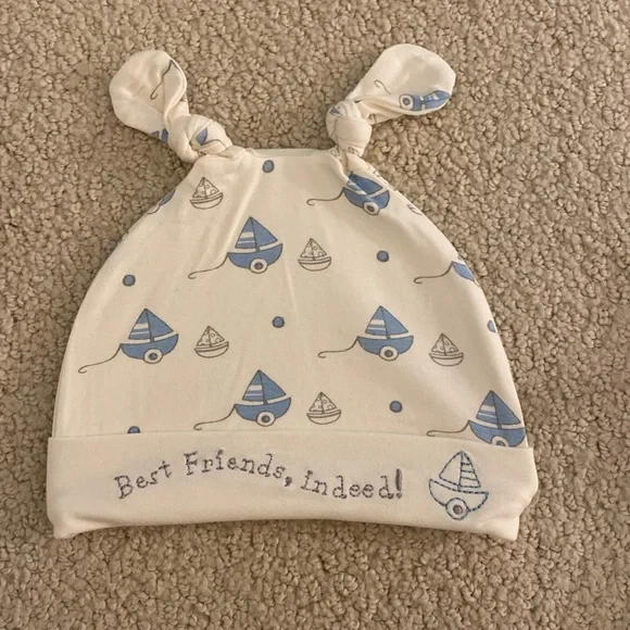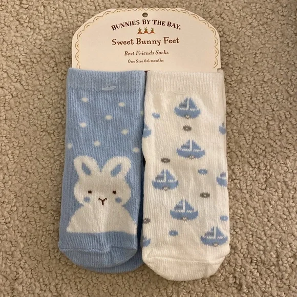 New with tags Bunnies by the Bay newborn gift set features a nautical theme blue sailboats on a one piece layette and cap, and the signature Bud and Skippit dog and bunny characters on a coordinating rayon/bamboo/cotton blanket, socks, a toy that features velour and satin bunny ears to cuddle and a soft face to grasp, and board book. Sweetest details. SFPF home. A darling assortment from our Skipit the Pup Collection, with an organic blanket to snuggle, a toy to play with and cuddle, a book for story time, and the perfect sleeper and socks, versatile and cute!