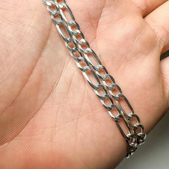 Vintage Italian .925 Silver 22” Figero Chainlink Necklace in great condition! 15.1 Grams of Italian .925 Silver!