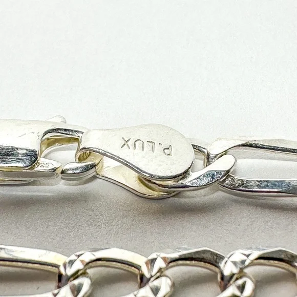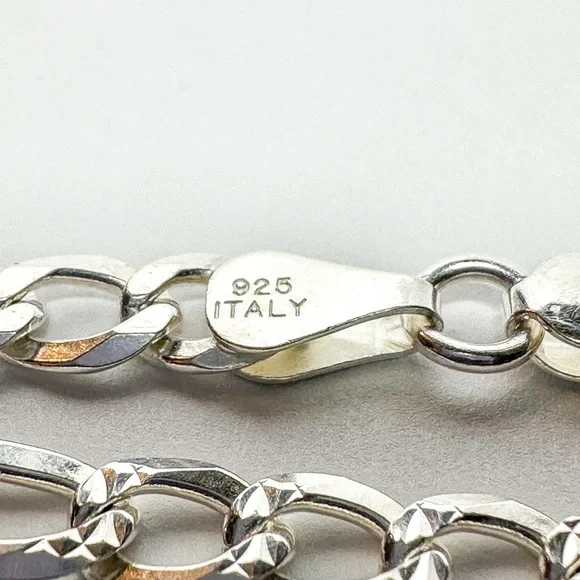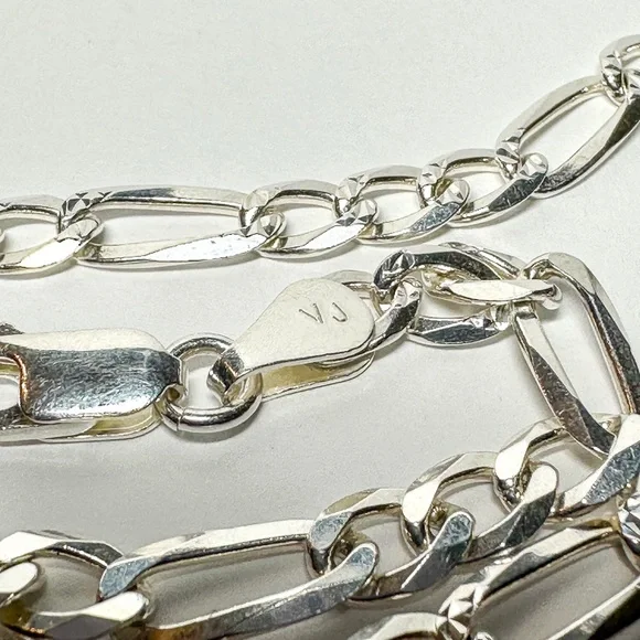 Italian .925 Silver 22” Figero Chainlink Necklace with makers initials “VJ”