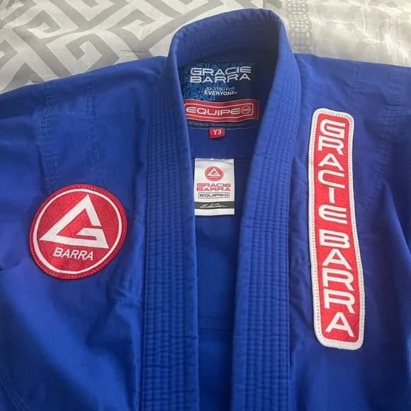 Blue Jiu-Jitsu gi set with Gracie Barra logo. Includes top and pants.Like new, perfect condition.