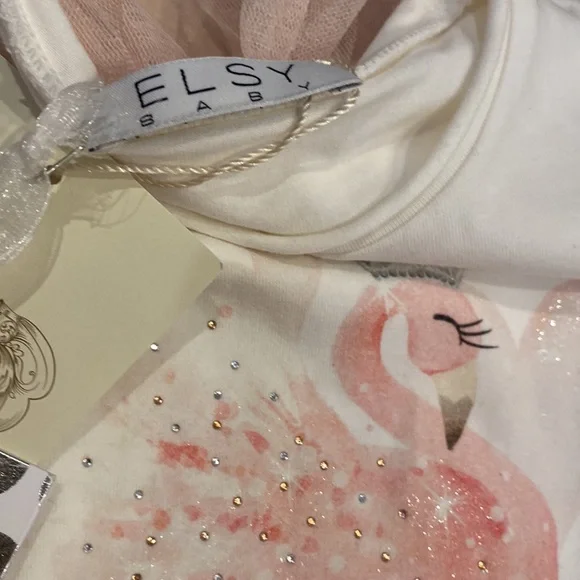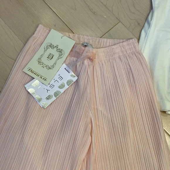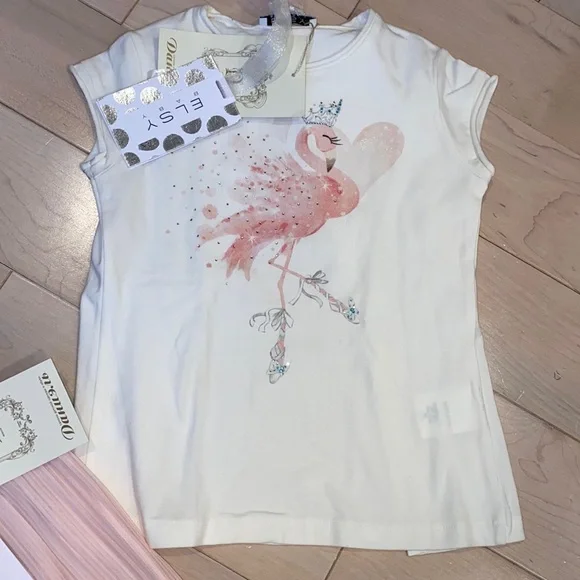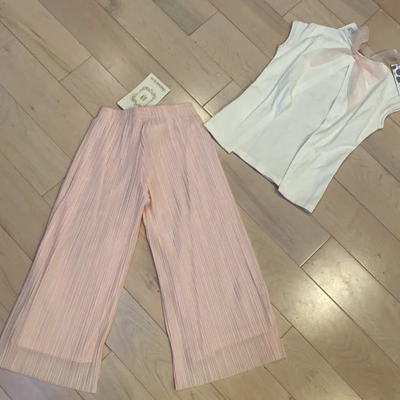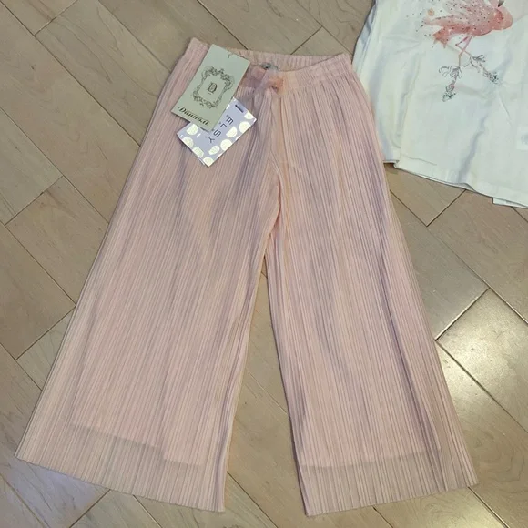 Brand new with tags Gorgeous, one of the kind Italian designer made in Italy from children’s boutique in Russia “Daniel” girls soft lined sheer pleated wide leg pants and soft cotton stretch matching bow back and rhinestone swan top size 6. Fill fit up 7.