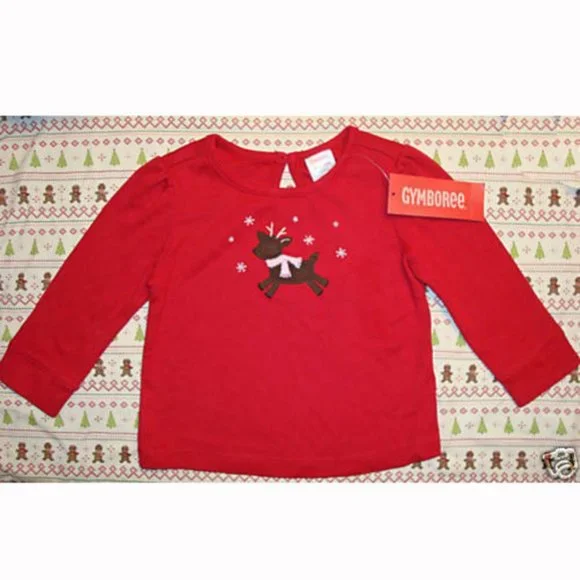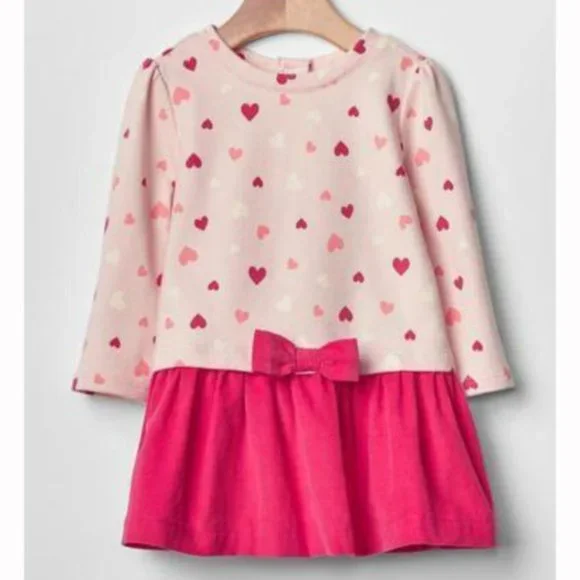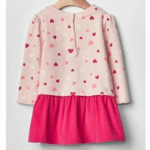 Baby Gap 2 Dresses, 2 Shirts, Tights LotBaby Gap Sweater Dresssoft red, pink, purple, green, and blue colorblock knitintarsia snowman on frontlong sleeves with ribbed cuffs and hemround necklinebutton placket at shoulder seam for easy dressing100% cottonSizes: 3-6 monthsMSRP: $44.95Baby Gap Mixed-Media Tier Dresscolor: "milkshake pink"soft and warm French terry with allover heart printlong sleeves with shirring at shouldersround necklinerear button placketdecorative bowshirring at corduroy skirt adds fullness to skirtincludes diaper cover100% cottonSize: 3-6 MonthsMSRP: $34.95Gymboree "Argyle Animals" Shirtpink"cutie pie" appliqued on chestgathering around cuffsthree snaps at the back of neck100% cottonSize: 3-6 MonthsMSRP: $14.50Gymboree "Winter Snowflake" Shirtred with brown ribbed velour reindeer with a pink scarf appliqued on chest surrounded by white snowflakeskey-hole opening at back of neckone button closure100% cottonSize: 3-6 MonthsMSRP: $19.50Gymboree Tightsivorypuppies down leg76% cotton/22% nylon/2% spandexSize: 0-6 MonthsMSRP: $12.50New With Tags