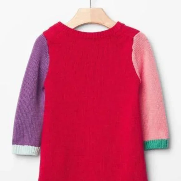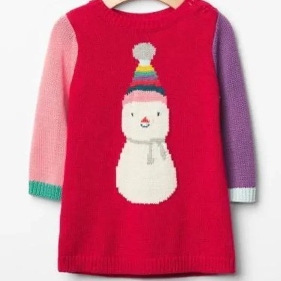 Baby Gap 2 Dresses, 2 Shirts, Tights LotBaby Gap Sweater Dresssoft red, pink, purple, green, and blue colorblock knitintarsia snowman on frontlong sleeves with ribbed cuffs and...