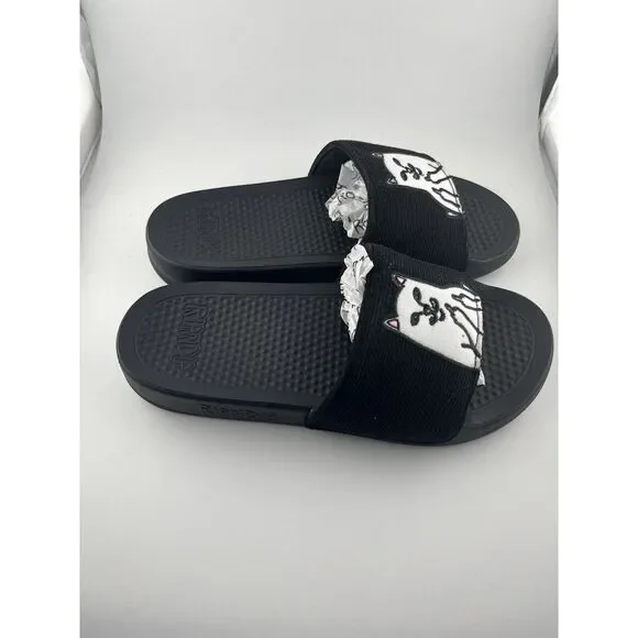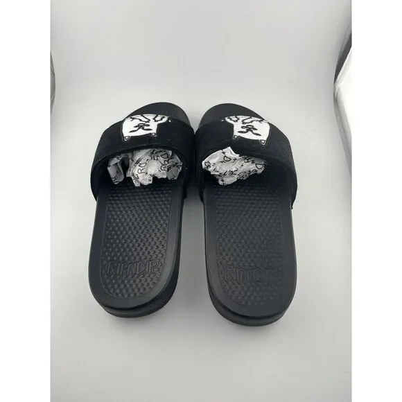 RIPNDIPLord Nermal Slides‎ Size 4 Black With Cat Logo