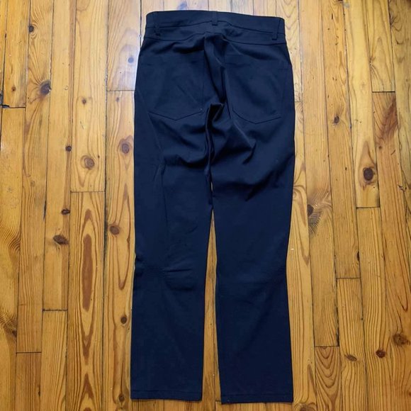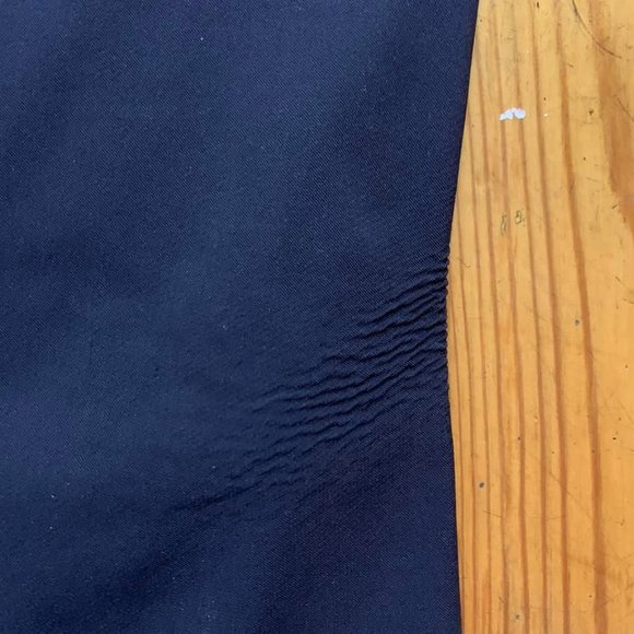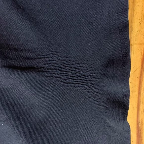 Some signs of wear with crimping around back of the knee and discoloration at belted waist.Theory´s signature five-pocket pant with a slim leg from hip to ankle. Fully bonded at the seams for a flattering fit, this pant is made of flexible, lightweight stretch cotton with the subtle texture of wool.