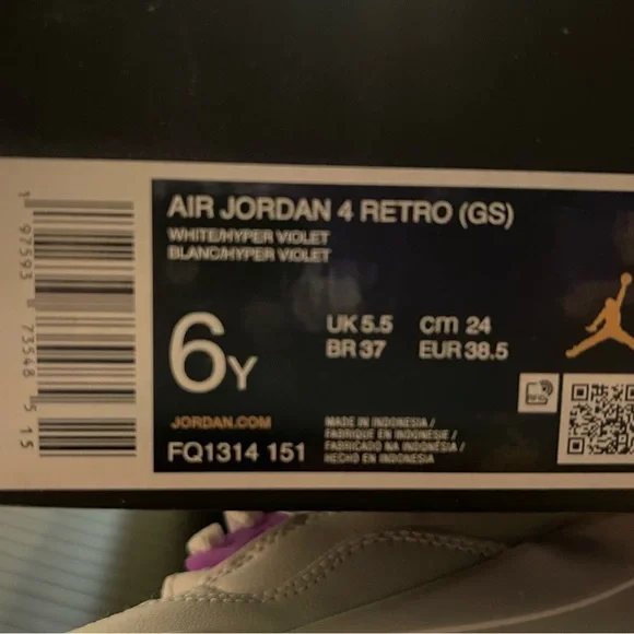 Air Jordan 4 Retro White/Hyper Violet Size 6YStyle : Fq1314151