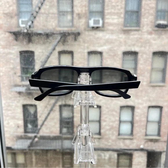 Designed in NYC, handmade in Italy, this modern acetate aviator is sure to be a frame worn daily. These are timeless black sunglasses with a dark olive gradient lens. They’re easy to wear, modern, and flattering for many face shapes as the lens is squared out and not a teardrop.
