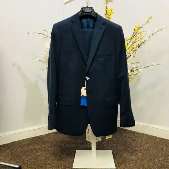 Blue Hart Schaffner Marx single-breasted 100% wool suit. Fully lined. Trouser inseam measures 29". Shoulder to wrist 23.5". Shoulder to shoulder 15.5". Waist 28.5, indicated on label. Worn once and dry cleaned. Absolutely pristine condition and such a nice material.- Hart Schaffner Marx- Blue- Size boys 17- 100% wool- Dry clean only