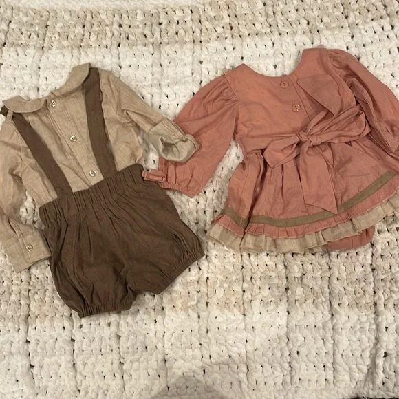 B/G twin matching outfits12 months- Evie’s closet dress18 months- my three sons boys outfitBoth worn once for family photos