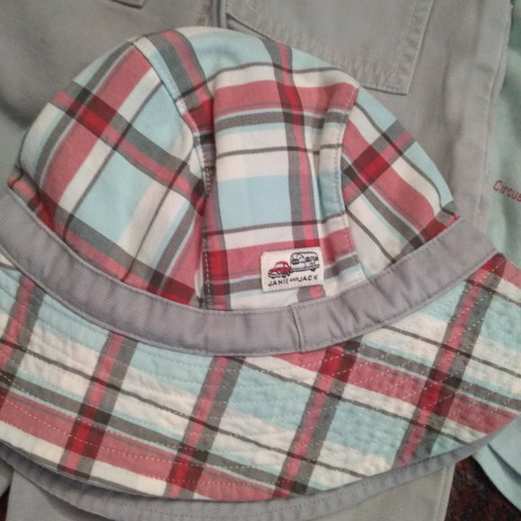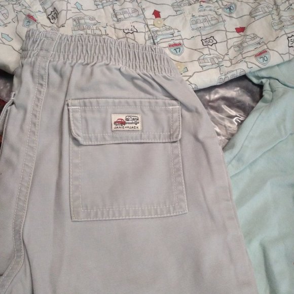 More photos on the way to show each piecePant 12-18 monthsButton Shirt 18-24 mTee is 2T (on small side)Lined Jacket 12-24 monthsReversable hat size missig but up to 2TEUC items show slight fading from wash wearRoad trip ready for summerAMAZING VINTAGE JANIE & JACK SETIMPOSSIBLE TO FINDY2K