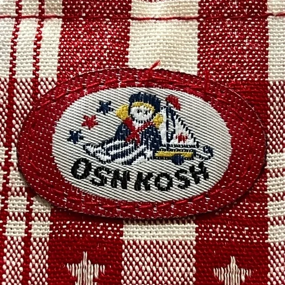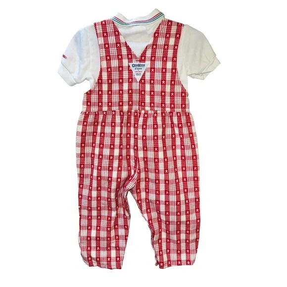 This rare vintage Oshkosh B’Gosh red gingham stars deadstock set includes a collared polo shirt and overalls, perfect for a party or casual occasion. Made of 100% cotton, the...