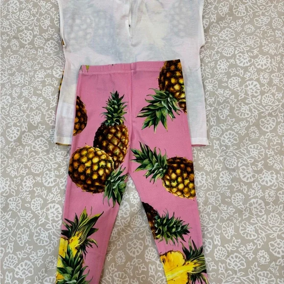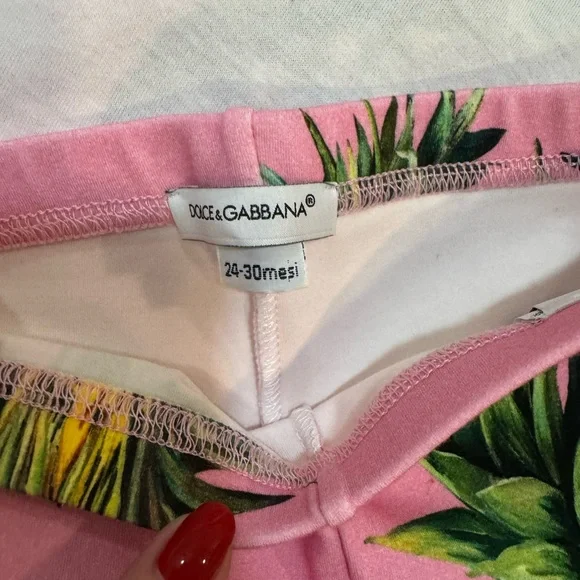 Indulge in the delightful allure of Dolce & Gabbana´s matching sets, showcasing a lively pineapple print on a soft pink backdrop. The golden-yellow pineapples bring a whimsical flair to your attire, ensuring both comfort and style.