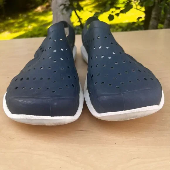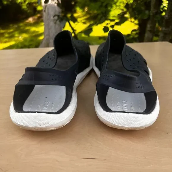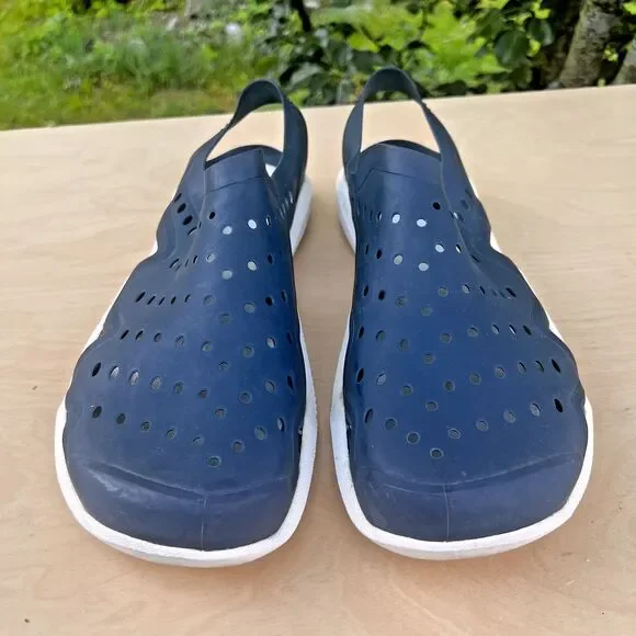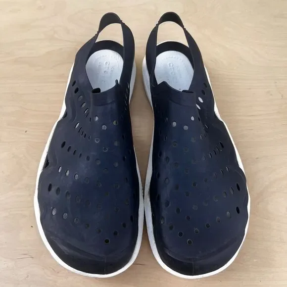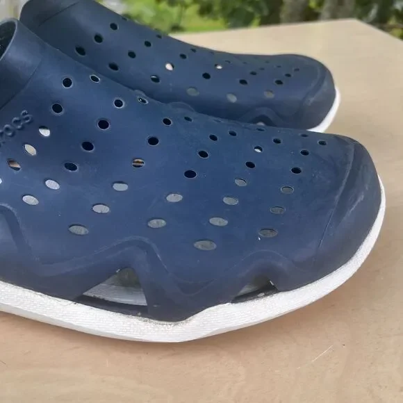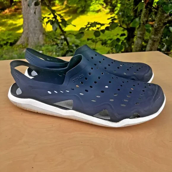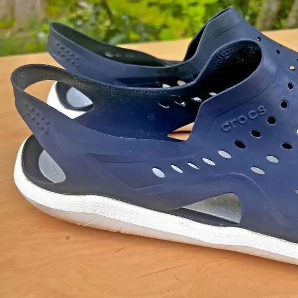 The Crocs Men´s SwiftWater Wave Sandals in Blue/Pearl White are designed for iconic comfort and style. These slip-on sandals feature a rubber outsole, lightweight design, and breathable straps, making them perfect for travel, activewear, and casual occasions. The blue and white color scheme, along with the logo accents, adds a touch of personality to the solid pattern. The closed toe design, Croslite lining, and cushioning level of minimal make these sandals ideal for summer, fall, and spring seasons, whether you´re boating, at the beach, gardening, or outdoor activities.The photos are the BEST description of the item and are considered a part of my description. Comes from a smoke free home. The photos depict the actual item you will receive. (May have scratches due to pre own condition). Please review all the pictures(M-3)