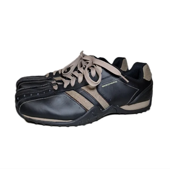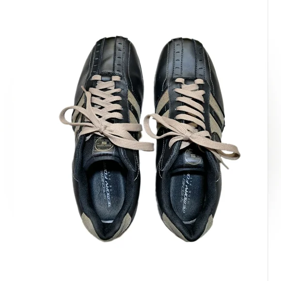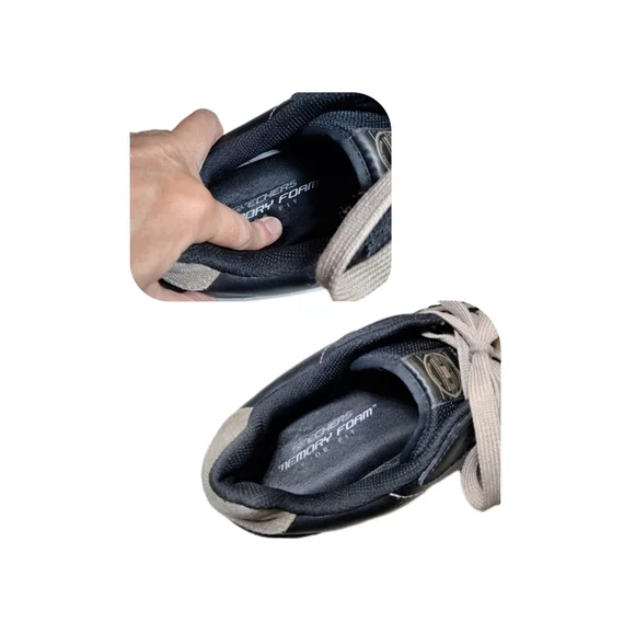 Skechers Sneakers Casual Urban Track Leather Memory Foam Shoes Size 11Step out in style with these Skechers Memory Foam Leather Extra Wide Size 11 Sneakers. Featuring a sleek black leather and tan denim, these shoes offer both comfort and fashion for everyday casual or business wear. The insoles have a comfortable memory foam cushion inserts including the textured outer sole makes them perfect for walking. Please see pictures for close-ups, what you see is what you purchase, all sales are final. I´m available 24/7 if you have any questions, Thanks!