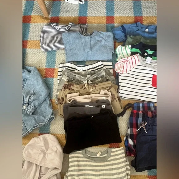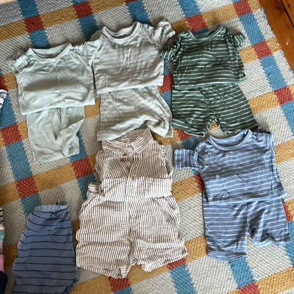 Stylish matching sets for kids. Includes various colors and patterns. Perfect for everyday wear. Mostly Zara mixed in with Quincy Mae Thimble, and Tea collection. Mixed long sleeve, pants, t shirts, shorts and onesies. 9-12, 12-18, 18-24 month sizing. Mostly 9-12. Also includes pajamas