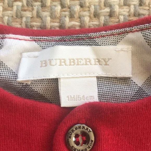 Red Burberry outfit, infant size 1 month. EUC. From pet-free, smoke-free home.