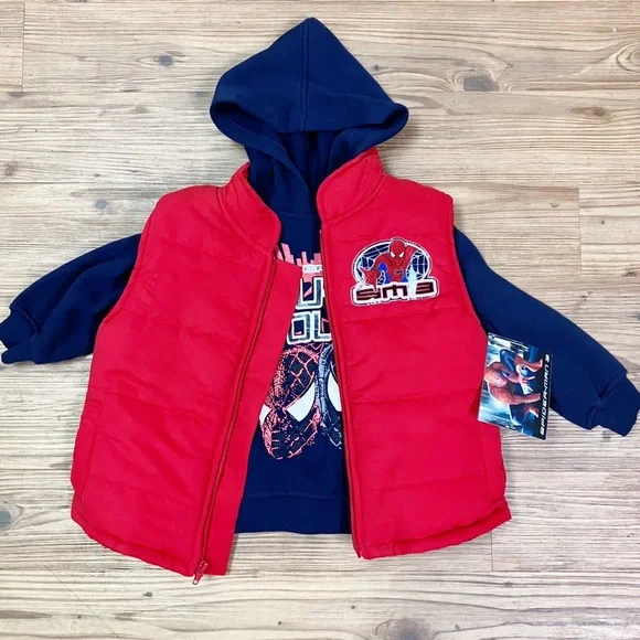 Vintage NWT 2007 Marvel Spiderman 3 Vest Hoodie 2 Piece Set Toddler Boys SIZE 2T