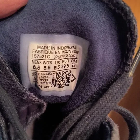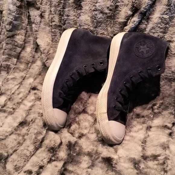 Navy Blue suede High tops, excellent pre-owned condition. Men´s size 6.5 Women´s size 8.5