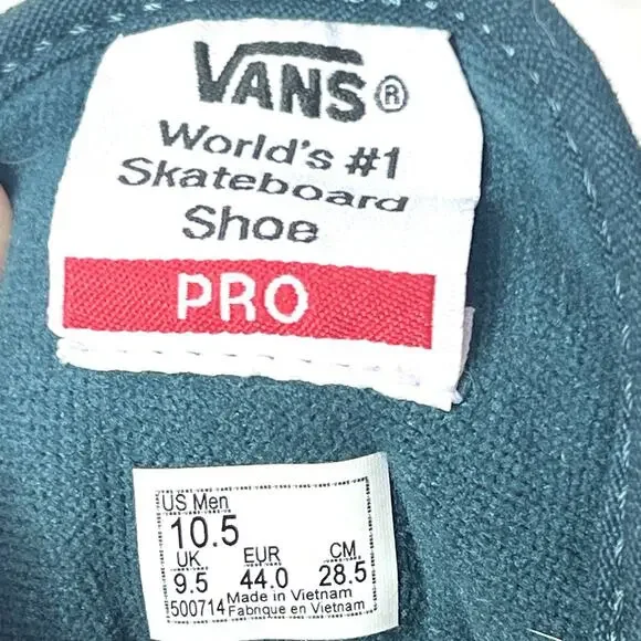 Vans PRO Skate Shoes Multicolor Sneaker Men´s Size 10.5 Low Top Lace Up Suede CanvasPre-owned that looked new, well kept, very clean.Please zoom in each picture as photos are part of the description.Excellent quality from a very prestigious brand.Shoes were cleaned & sanitized inside & out.Thank you for looking and I hope to serve you soon.(10)