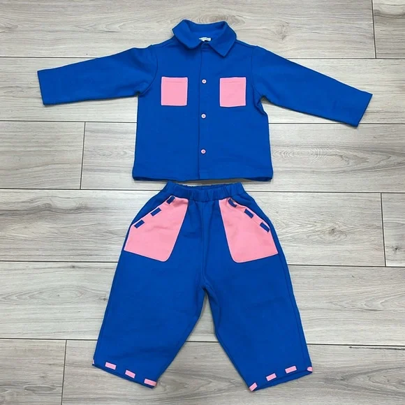 THE SUNDAY COLLECTIVE Organic Patchpocket Shirt & Pants - Pink & Blue